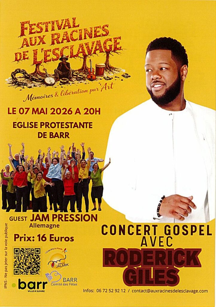 – jeudi 7 mai à 20h : concert gospel avec Roderick Giles, dans le cadre du Festival aux Racines de l’Esclavage. Prix : 16 euros. Pour tout renseignement : 06 72 52 92 12 – contact@auxracinesdelesclavage.com